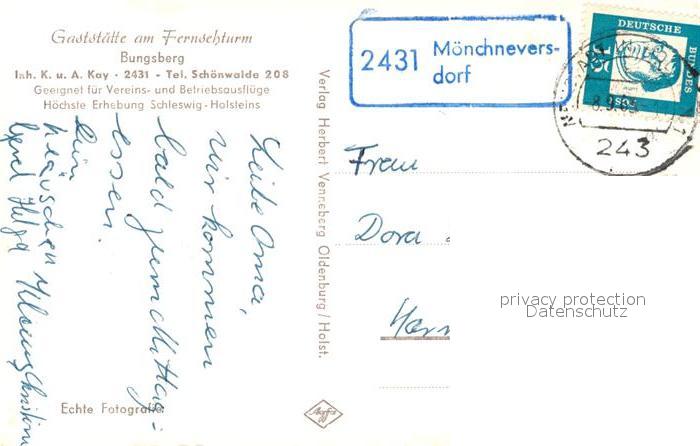73256640 alte Postkarte Bungsberg Aussichtsturm postalisch gelaufen Erhaltung siehe scans [NatalD47] KatCode: 11110001055038