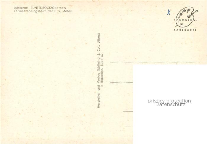 73652401 Buntenbock Ferienerholungsheim der IG Metall Luftkurort postalisch nicht gelaufen Erhaltung siehe scans [FriedD77] KatCode: 11110003153004