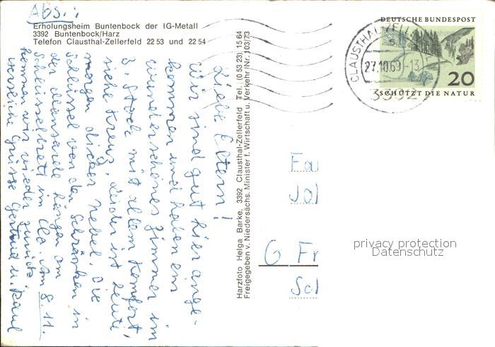72572729 alte Postkarte Buntenbock Fliegeraufnahme Erholungsheim postalisch gelaufen Erhaltung siehe scans [AndreD76] KatCode: 11110003153004