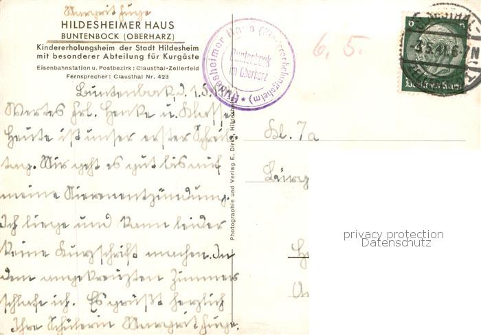 73812939 alte Postkarte Buntenbock Hildesheimer Haus Kindererholungsheim postalisch gelaufen Erhaltung siehe scans [FriedD77] KatCode: 11110003153004