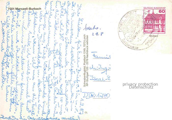 34143574 alte Postkarte Burbach Albtal Marxzell Karlsruhe Schwarzwald BW Fliegeraufnahme postalisch gelaufen Erhaltung siehe scans [FriedD77] KatCode: 11110008215047