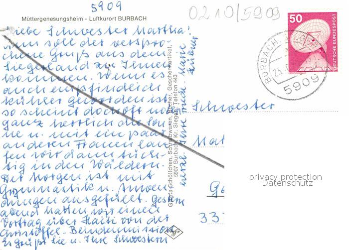 72693153 alte Postkarte Burbach Eifel Muettergenesungsheim postalisch gelaufen Erhaltung siehe scans [LiesaD40] KatCode: 11110007232210