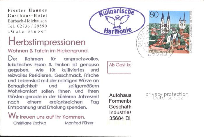 72392221 alte Postkarte Burbach Gasthaus Hotel Fiester Hannes postalisch gelaufen Erhaltung siehe scans KatCode: 11110005970040