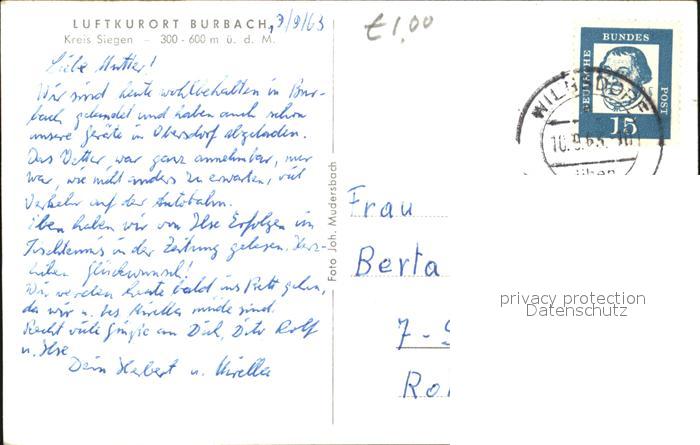 72477684 alte Postkarte Burbach Siegerland Blick ins Tal Luftkurort postalisch gelaufen Erhaltung siehe scans KatCode: 11110005970008