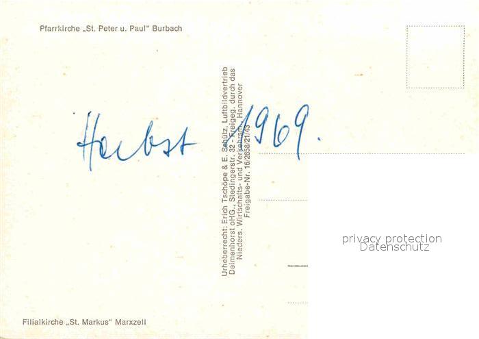 72725723 Burbach Siegerland Fliegeraufnahme mit Pfarrkirche St. Peter und Paul postalisch nicht gelaufen Erhaltung siehe scans [LiesaD40] KatCode: 11110005970008