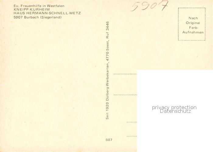 73716851 Burbach Siegerland Kneipp-Kurheim Haus Hermann Schnell Metz postalisch nicht gelaufen Erhaltung siehe scans [FriedD77] KatCode: 11110005970008