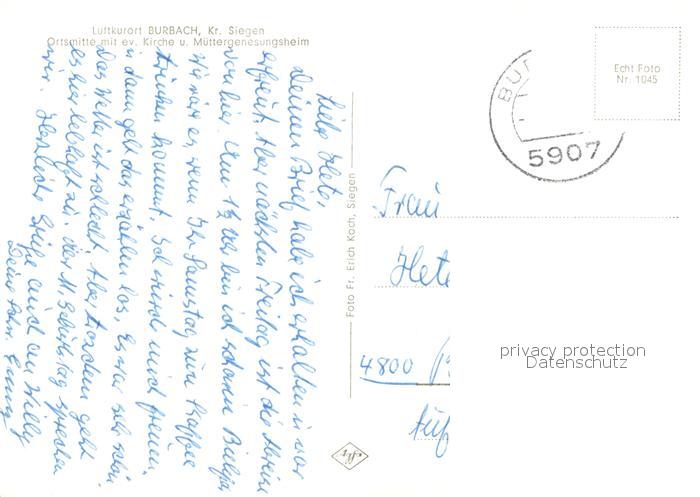 33665692 alte Postkarte Burbach Siegerland Ortsmitte mit ev Kirche und Muettergenesungsheim postalisch gelaufen Erhaltung siehe scans [WerneD78] KatCode: 11110005970008
