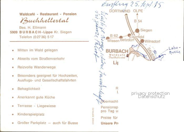 Burbach Siegerland Waldcafe Restaurant Pension Buchhellertal postalisch nicht gelaufen Werbekarte (keine Postkarte) Erhaltung siehe scans