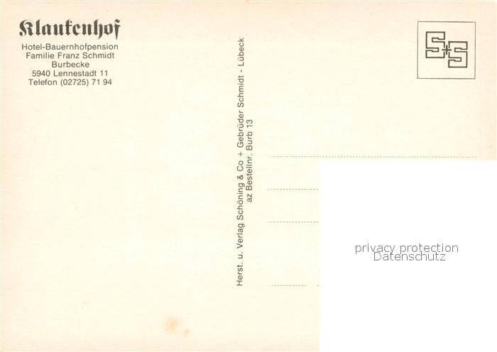 73662287 Burbecke Sauerland Hotel Bauernhofpension Klaukenhof Kaminzimmer Garten postalisch nicht gelaufen Erhaltung siehe scans [FriedD77] KatCode: 11110005966020