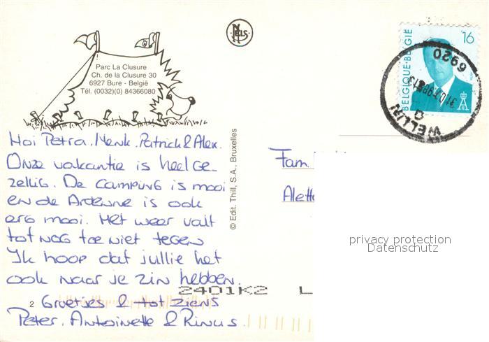 73703510 carte postale Bure Liege Parc La Clusure Campingplatz Ponyreiten Tennisplatz Swimming Pool postalisch gelaufen Erhaltung siehe scans [FriedD77] KatCode: 11070084009636