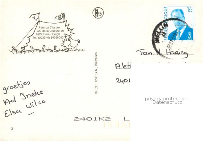 73703511 carte postale Bure Liege Parc La Clusure Campingplatz Radtouren Tischtennis Wild postalisch gelaufen Erhaltung siehe scans [FriedD77] KatCode: 11070084009636
