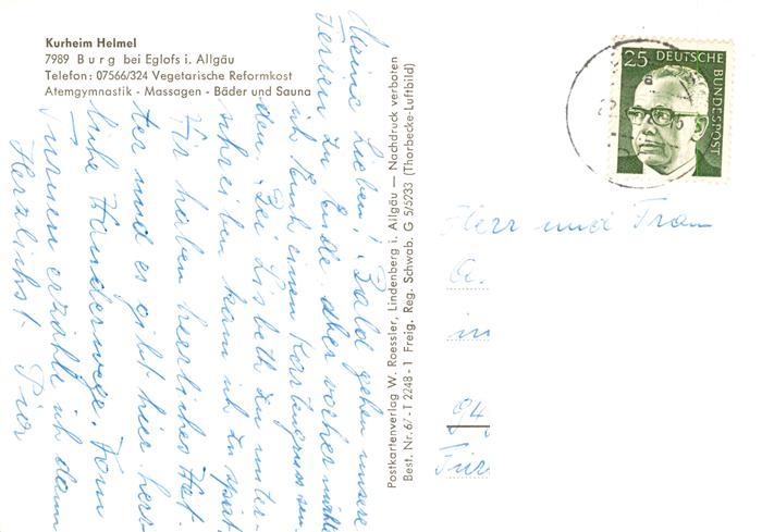 73887554 alte Postkarte Burg Argenbuehl Fliegeraufnahme mit Kurheim Helmel postalisch gelaufen Erhaltung siehe scans [FriedD77] KatCode: 11110008436094