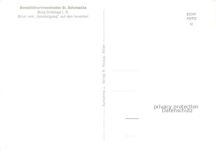 74121844 Burg Dinklage Benediktinerinnenkloster St Scholastika Blick vom Apostelgang auf den Innenhof postalisch nicht gelaufen Erhaltung siehe scans [WerneD78] Wern Katcode 11110003460003
