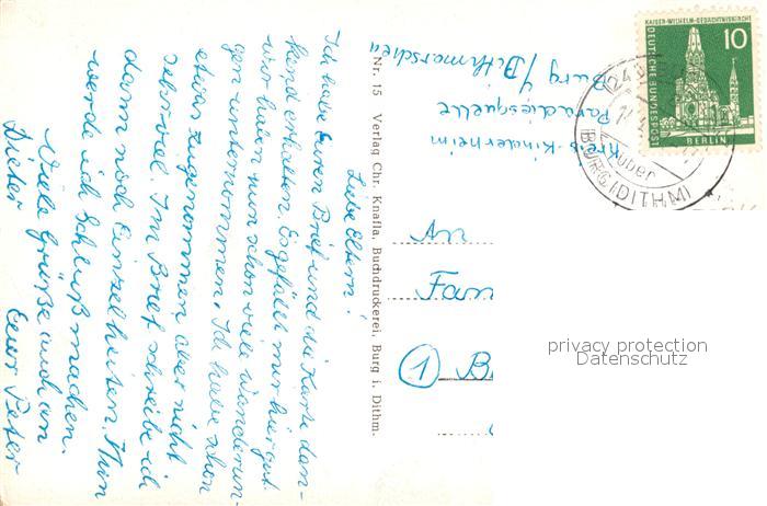 43353042 alte Postkarte Burg Dithmarschen Krenzerstrasse Burgwall Paradiestal Bahnhof Kirche postalisch gelaufen Erhaltung siehe scans [KathaD81] KatCode: 11110001051016