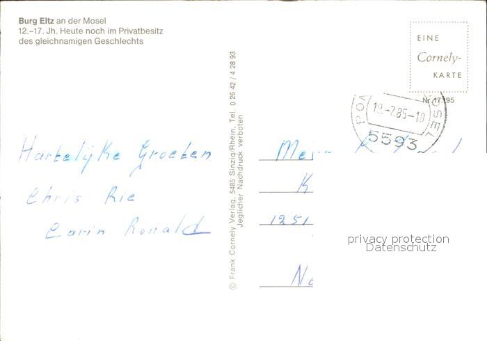 72430469 alte Postkarte Burg Eltz postalisch gelaufen Erhaltung siehe scans KatCode: 11110007137114