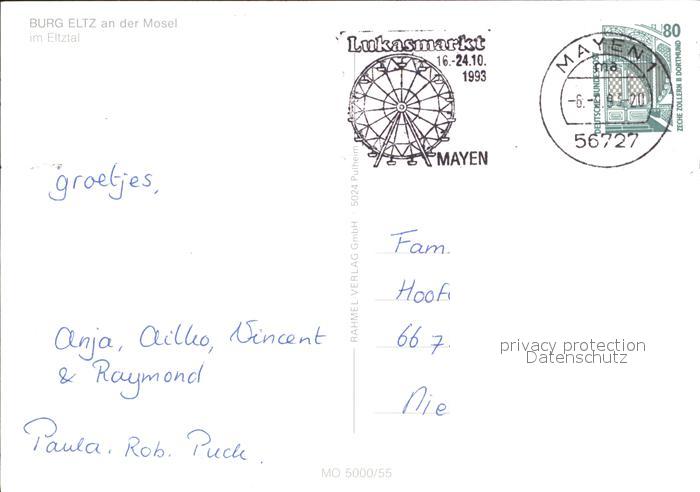 72223498 alte Postkarte Burg Eltz postalisch gelaufen Erhaltung siehe scans KatCode: 11110007137114