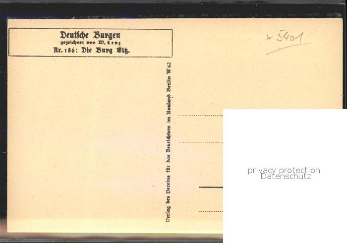 71907001 Burg Eltz Zeichnung W. Lenz postalisch nicht gelaufen Erhaltung siehe scans KatCode: 11110007137114