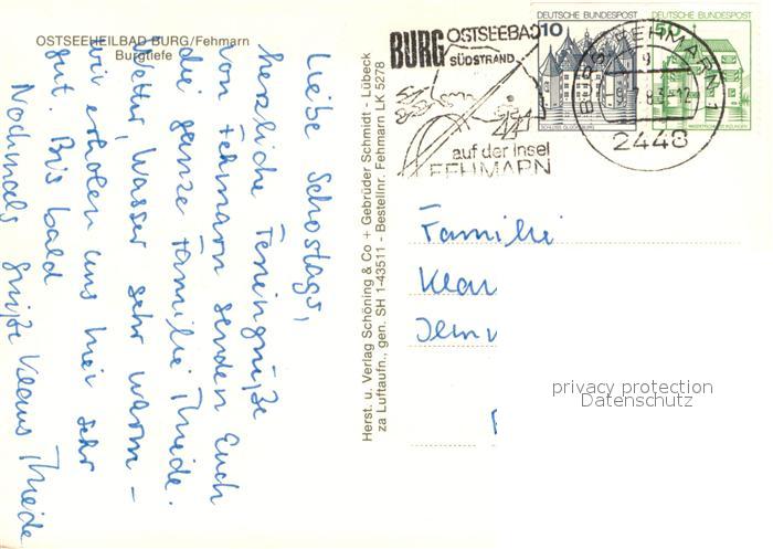 73668435 alte Postkarte Burg Fehmarn Burgtiefe Fliegeraufnahme postalisch gelaufen Erhaltung siehe scans [WerneD78] KatCode: 11110001055046