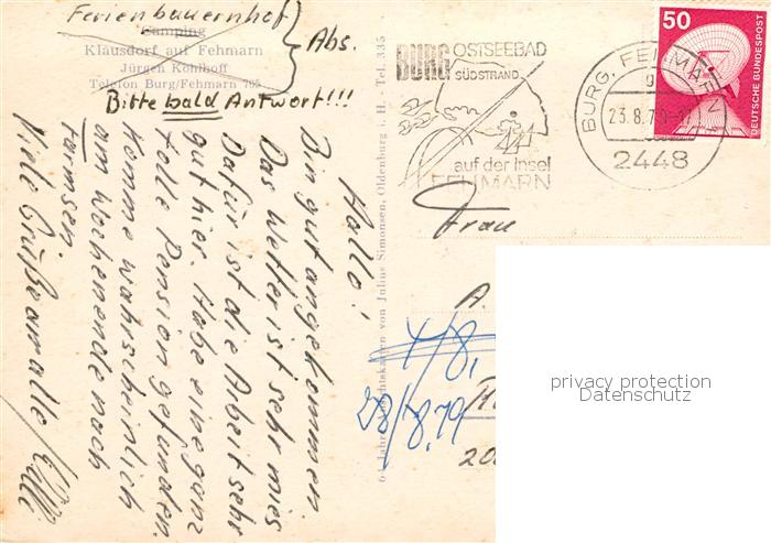 73838095 alte Postkarte Burg Fehmarn Camping Klausdorf Restaurant Gaststube Steilkuesten postalisch gelaufen Erhaltung siehe scans [WerneD78] KatCode: 11110001055046