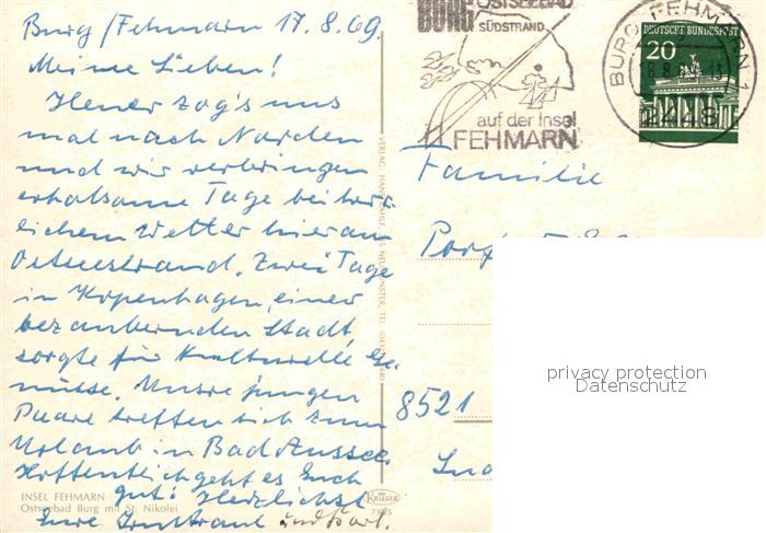 72646398 alte Postkarte Burg Fehmarn Dorfplatz postalisch gelaufen Erhaltung siehe scans [WerneD78] KatCode: 11110001055046
