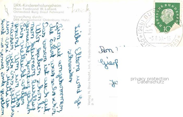 32732352 alte Postkarte Burg Fehmarn DRK Kindererholungsheim Haus Ferdinand Lafrentz Spielende Kinder Tagesraum postalisch gelaufen Erhaltung siehe scans [WerneD78] KatCode: 11110001055046