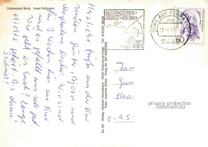 74026872 alte Postkarte Burg Fehmarn Ferienzentrum Ostseebad postalisch gelaufen Fliegeraufnahme Erhaltung siehe scans [FriedD77] KatCode: 11110001055046