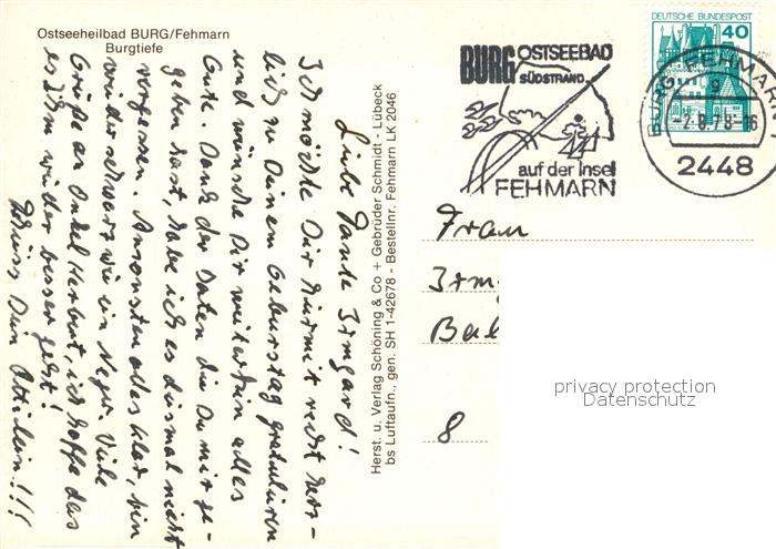 73198089 alte Postkarte Burg Fehmarn Fliegeraufnahme postalisch gelaufen Erhaltung siehe scans [KathaD81] KatCode: 11110001055046
