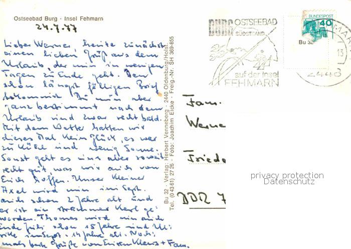72829491 alte Postkarte Burg Fehmarn Fliegeraufnahme postalisch gelaufen Erhaltung siehe scans [NatalD47] KatCode: 11110001055046