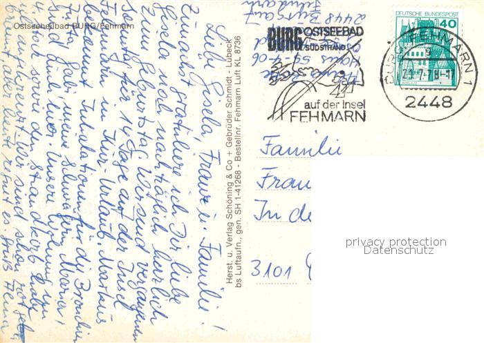 72684266 alte Postkarte Burg Fehmarn Fliegeraufnahme postalisch gelaufen Erhaltung siehe scans [WerneD78] KatCode: 11110001055046