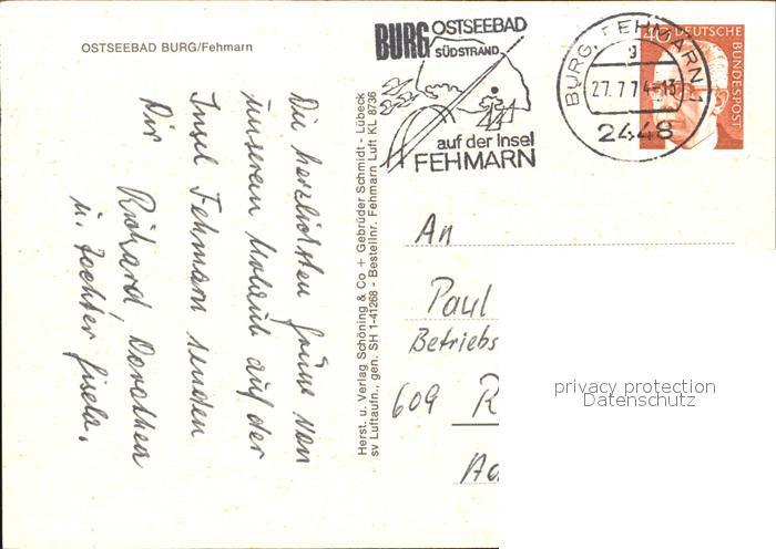 72570727 alte Postkarte Burg Fehmarn Fliegeraufnahme postalisch gelaufen Erhaltung siehe scans [AndreD76] KatCode: 11110001055046