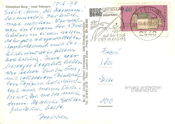 73540162 alte Postkarte Burg Fehmarn Fliegeraufnahme postalisch gelaufen Erhaltung siehe scans [WerneD78] KatCode: 11110001055046