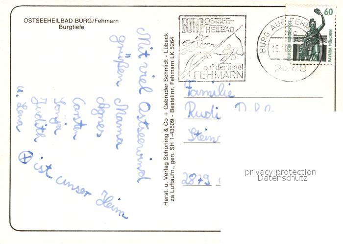 73091984 alte Postkarte Burg Fehmarn Fliegeraufnahme Burgtiefe postalisch gelaufen Erhaltung siehe scans [KathaD81] KatCode: 11110001055046