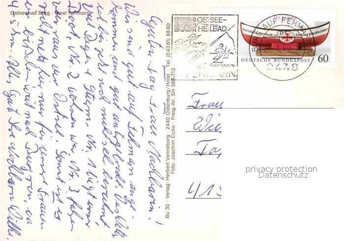72832076 alte Postkarte Burg Fehmarn Fliegeraufnahme mit Strand postalisch gelaufen Erhaltung siehe scans [LiesaD40] KatCode: 11110001055046