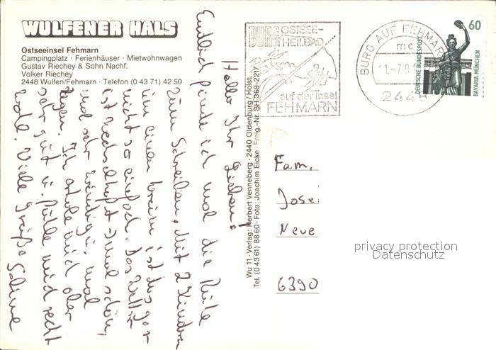 72450982 alte Postkarte Burg Fehmarn Fliegeraufnahme Wulfener-Hals Strand Freibad postalisch gelaufen Erhaltung siehe scans KatCode: 11110001055046