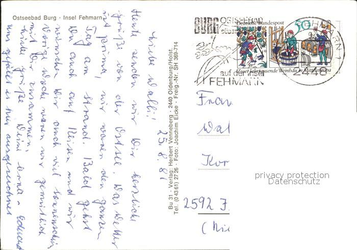 72519808 alte Postkarte Burg Fehmarn Luftaufnahme postalisch gelaufen Erhaltung siehe scans KatCode: 11110001055046
