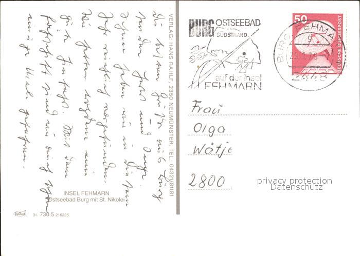 71989341 alte Postkarte Burg Fehmarn mit St. Nikcolei postalisch gelaufen Erhaltung siehe scans KatCode: 11110001055046