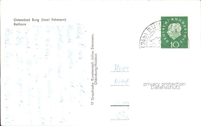 72116938 alte Postkarte Burg Fehmarn Rathaus postalisch gelaufen KatCode: 11110001055046