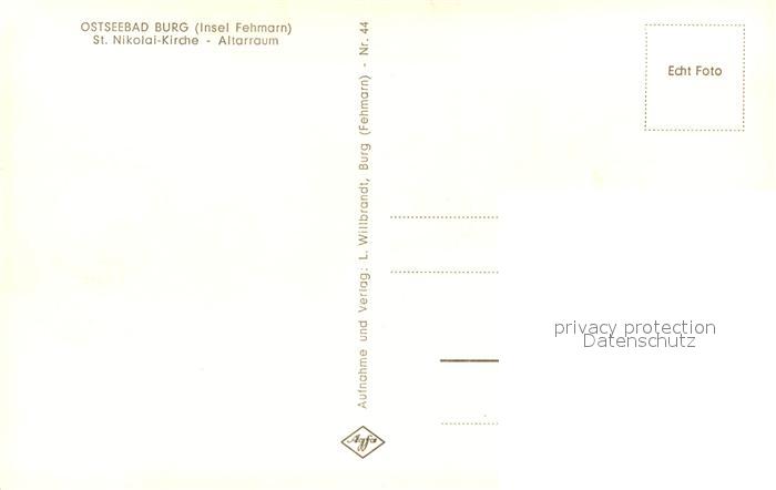 73550810 Burg Fehmarn St Nikolaikirche Altarraum postalisch nicht gelaufen Erhaltung siehe scans [WerneD78] KatCode: 11110001055046