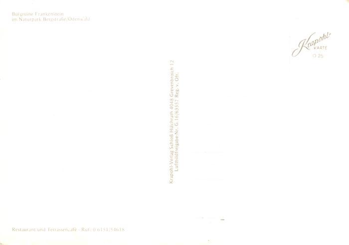 73881068 Burg Frankenstein Bergstrasse Fliegeraufnahme postalisch nicht gelaufen Erhaltung siehe scans [WerneD78] KatCode: 11110006432014
