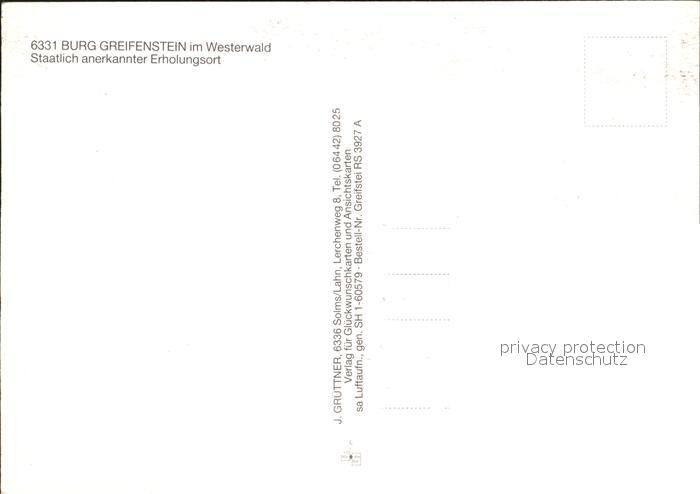 72238320 Burg Greifenstein Westerwald Fliegeraufnahme postalisch nicht gelaufen Erhaltung siehe scans KatCode: 11110006532010