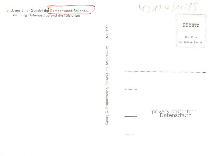 73760636 Burg Hohenaschau Blick aus Gondel d. Kampenwand-Seilbahn postalisch nicht gelaufen Erhaltung siehe scans [LiesaD40] KatCode: 11110009187114