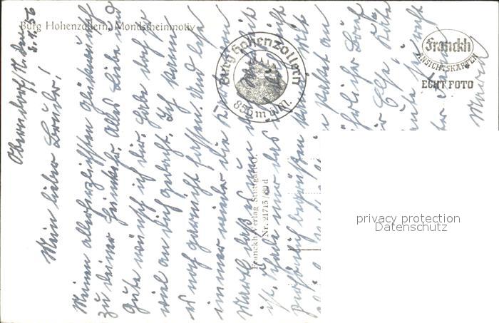 72291437 Burg Hohenzollern postalisch nicht gelaufen Erhaltung siehe scans KatCode: 11110008417008