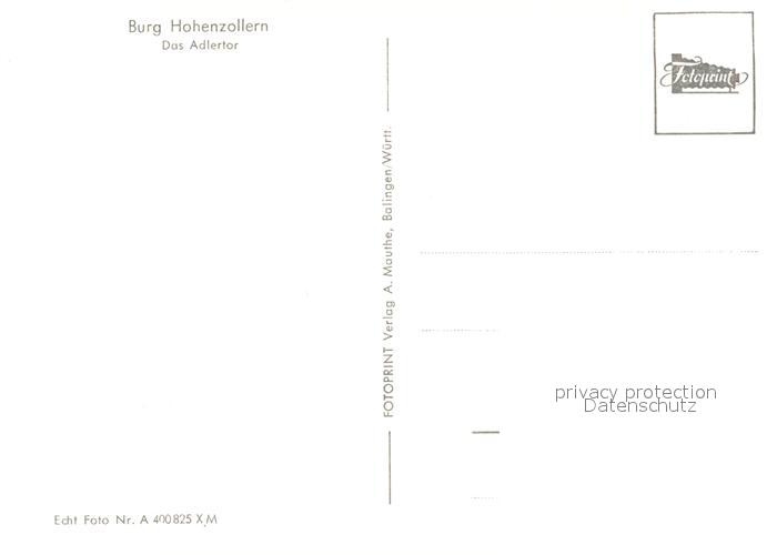 73333252 Burg Hohenzollern Das Adlertor postalisch nicht gelaufen Erhaltung siehe scans [WerneD78] KatCode: 11110008417008