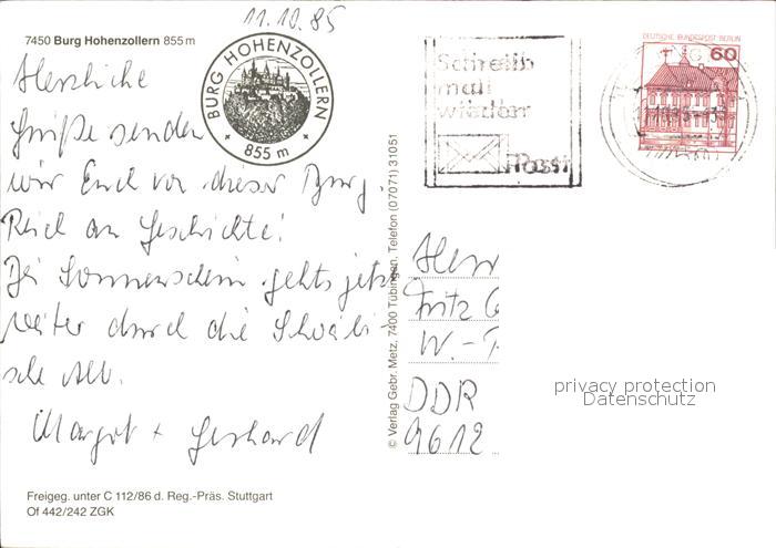 71931243 alte Postkarte Burg Hohenzollern Fliegeraufnahme postalisch gelaufen Erhaltung siehe scans KatCode: 11110008417008