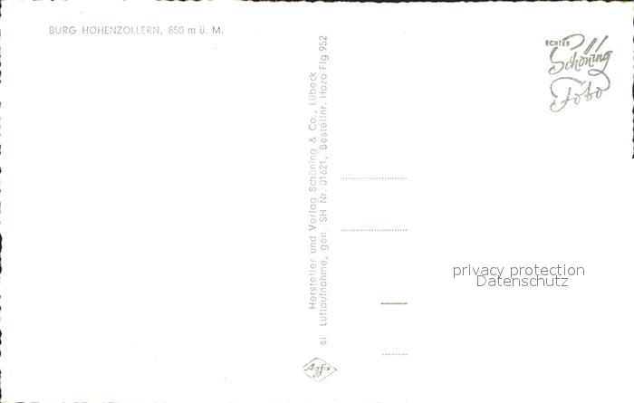 72312785 Burg Hohenzollern Fliegeraufnahme postalisch nicht gelaufen Erhaltung siehe scans KatCode: 11110008417008