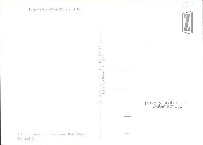 72295114 Burg Hohenzollern Fliegeraufnahme postalisch nicht gelaufen Erhaltung siehe scans KatCode: 11110008417008