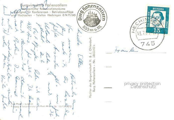 73662139 alte Postkarte Burg Hohenzollern Fliegeraufnahme postalisch gelaufen Erhaltung siehe scans [LiesaD40] KatCode: 11110008417008