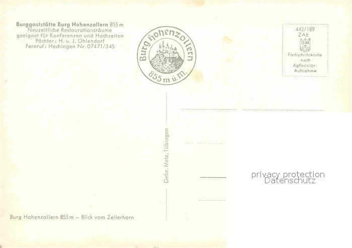 72824172 Burg Hohenzollern Gesamtansicht Blick vom Zellerhorn postalisch nicht gelaufen Erhaltung siehe scans [FriedD77] KatCode: 11110008417008
