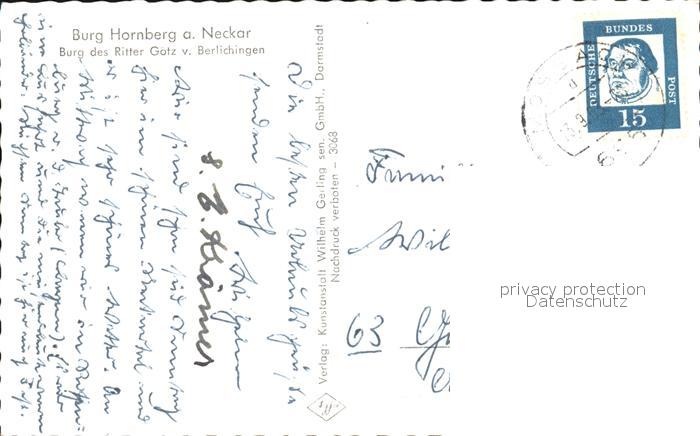 72393843 alte Postkarte Burg Hornberg Burg des Ritters Goetz von Berlichingen Neckarpartie postalisch gelaufen Erhaltung siehe scans KatCode: 11110008225067
