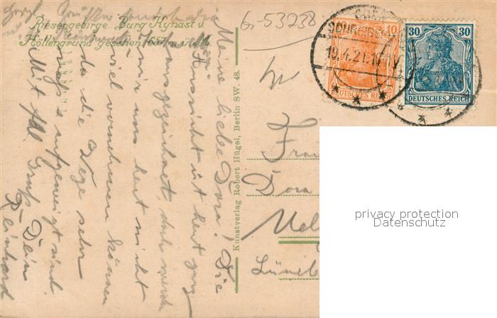 old postcard Burg Kynast postalisch gelaufen Erhaltung siehe scans [PaolaD17]